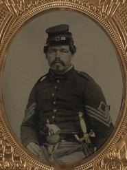 As in this picture at right, Non-Commissioned Officer's generally wore a plain knight-head sword; the blade void of etchings. This is in stark contrast to the much fancier Ames Militia Officer's Sword featured at left.